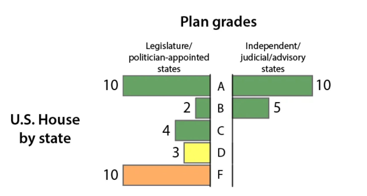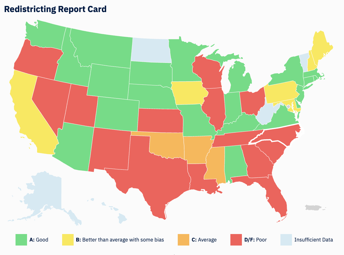 Legislature-controlled states, where politicians pick their own voters, are responsible for all the D and F grades.