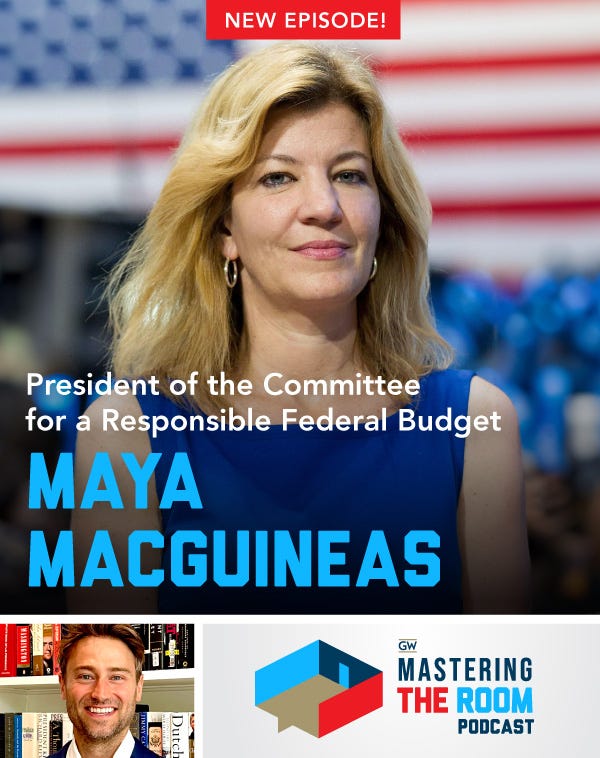 I’m happy to join you this morning. In this week’s episode of Mastering the Room — live now — President of the committee for a responsible federal budget, Maya MacGuineas, joins Casey to chat through all things federal budget.